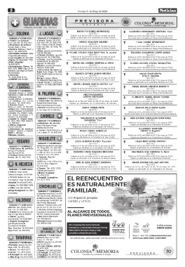 SÁBADO 1º Y DOMINGO 2 SÁBADO 1º Y DOMINGO 2 Sepelio ya efectuado en el Cementerio de Nueva Palmira. Sus restos fueron cremados en Parque Colonia Memorial.