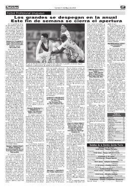 Finalmente, Peñarol primer minuto. El brasi- te desde lejos que gol- puntos. se quedó en el centro del Boston River ........... 27